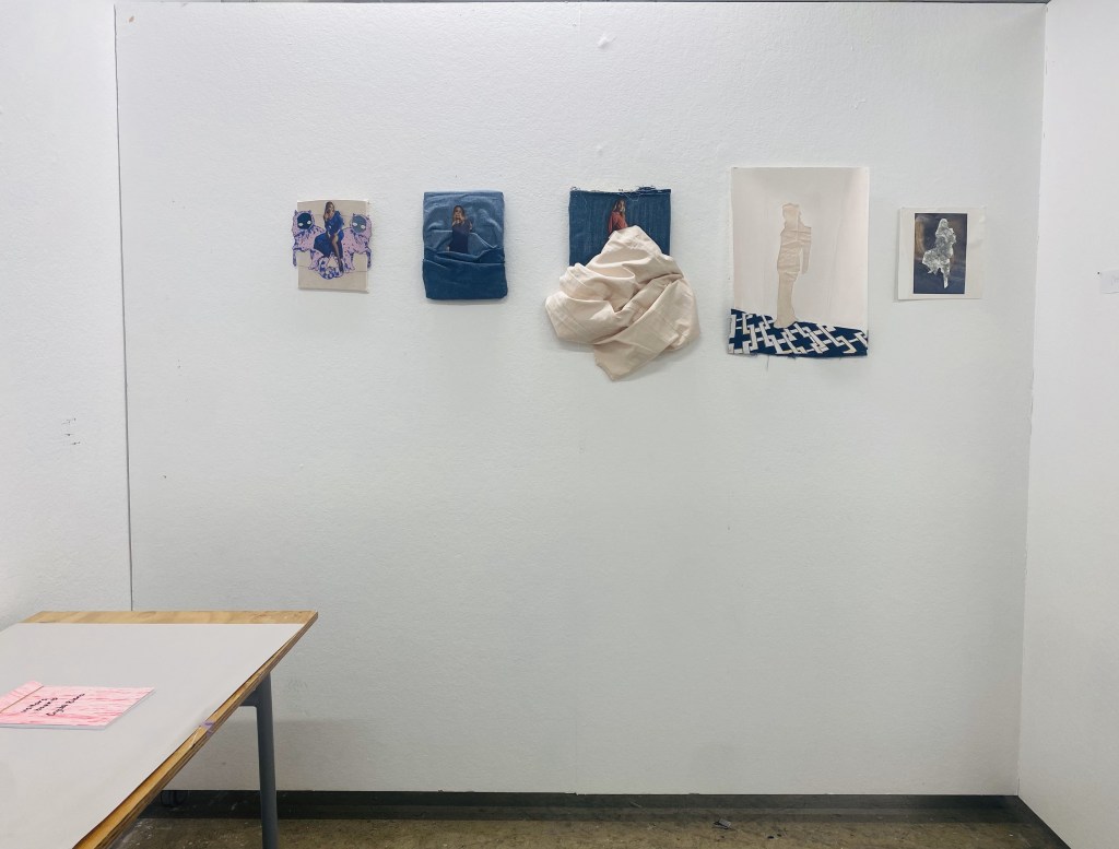 I set up my art works in my space. When I was told about this open studio, we were told that we just need to clean up the space and put things to the side. So I did that and made sure viewers aren’t leaning against a table to see my work. However, on the day, we were told to move away our tables with our materials. This resulted to my work display looking uneven.