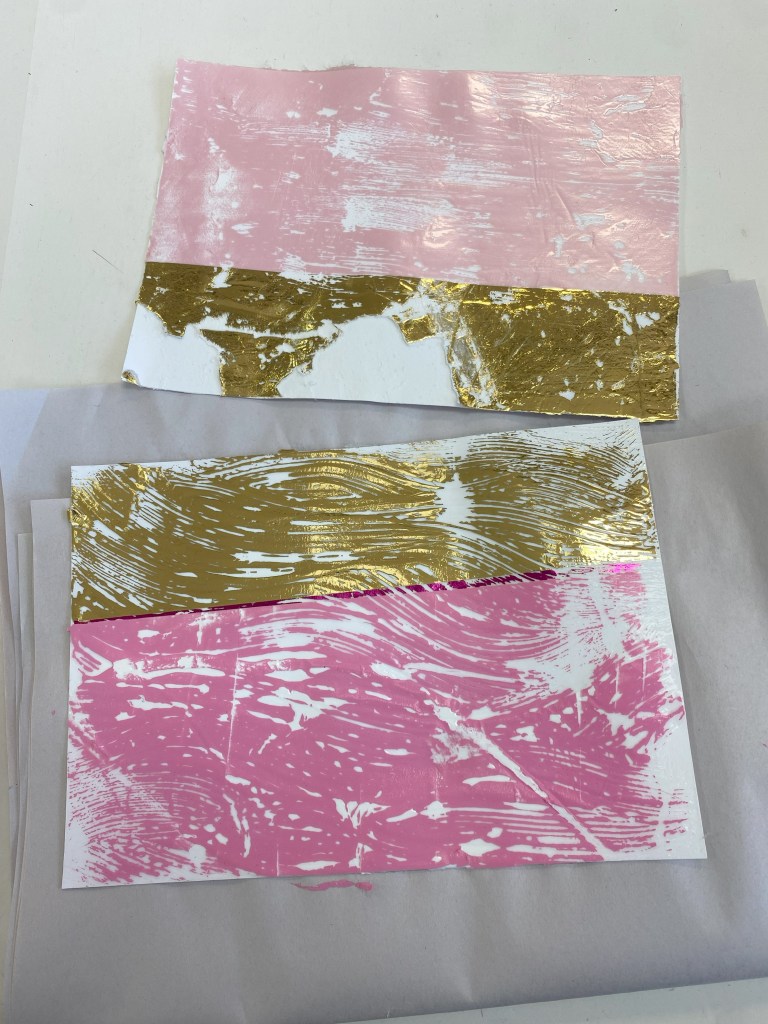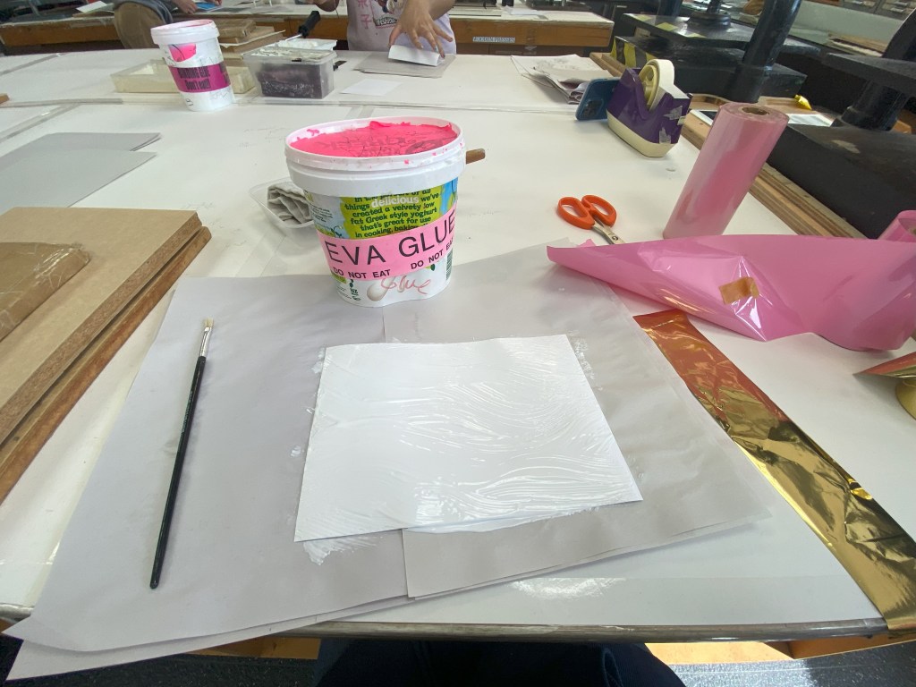 In this workshop, we get to do one of the folding books again but in our own way. After making a simple plain white folding book. I had time to experiment with foil. I used PVC glue and made overlapping wavy lines