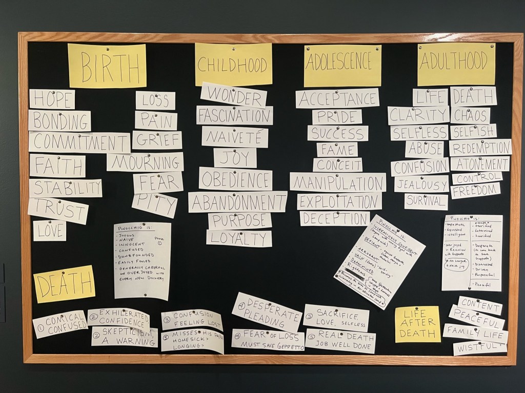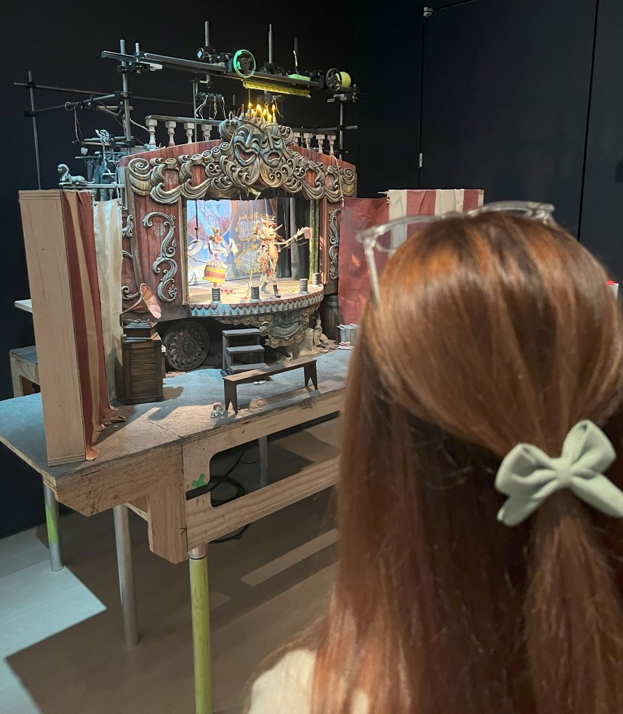 There were documentary videos on loops that shows them making the film in front of their sets. This helps the audience visually see how they made it. Due to it being stop-motion, a lot of these materials are well organised and planned in many charts/paper which was fascinating to see. Being able to visit this exhibition made me realise how time consuming stop-motion films are. However, the amount of effort towards this piece of art gave it more purpose and a beautiful expression to the film.
