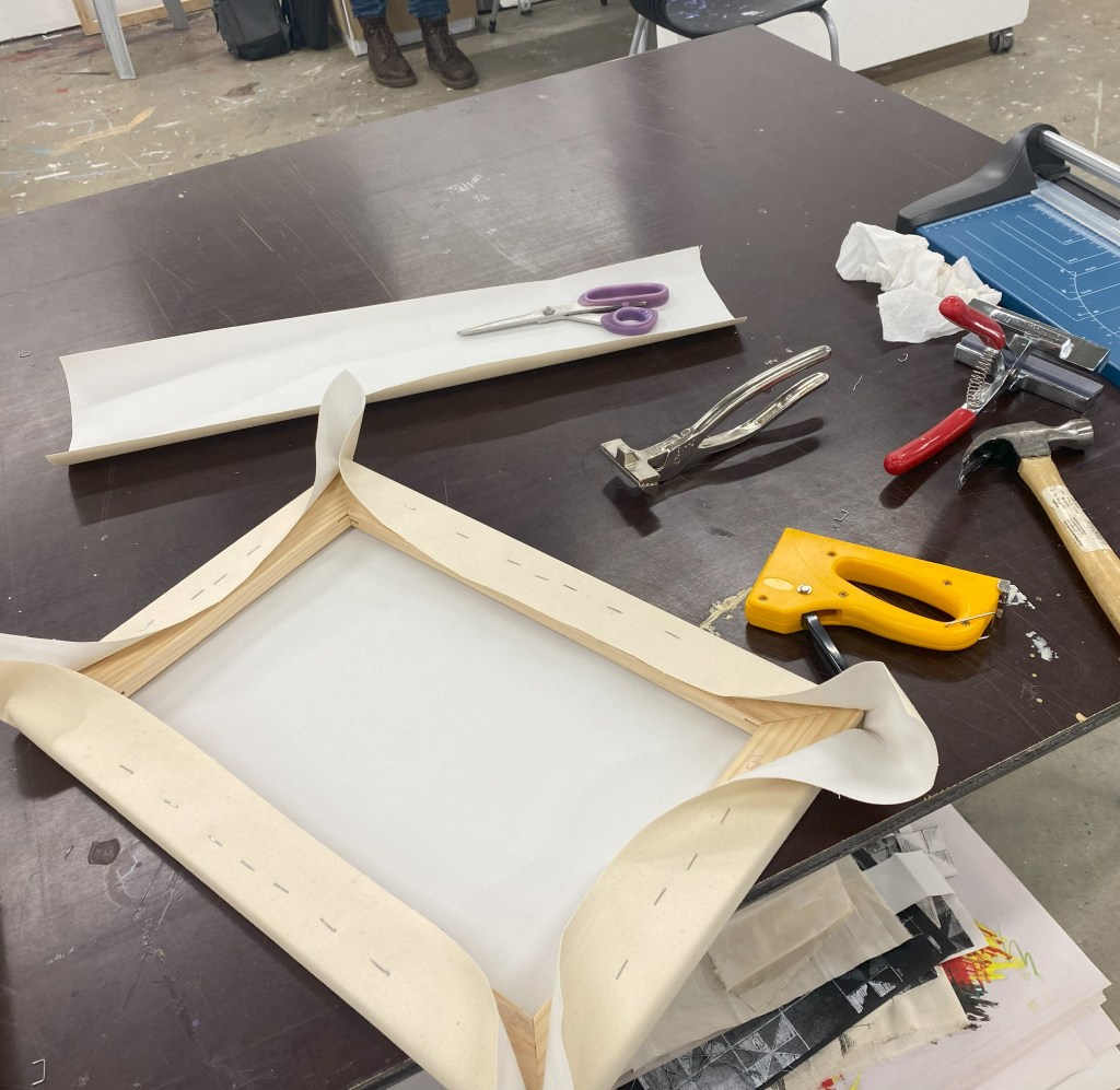 During the priming workshop, we were able to get a demonstration on how to make a canvas. This encouraged me to attempt making my first ever canvas. I enjoyed learning to stretch my own canvas.